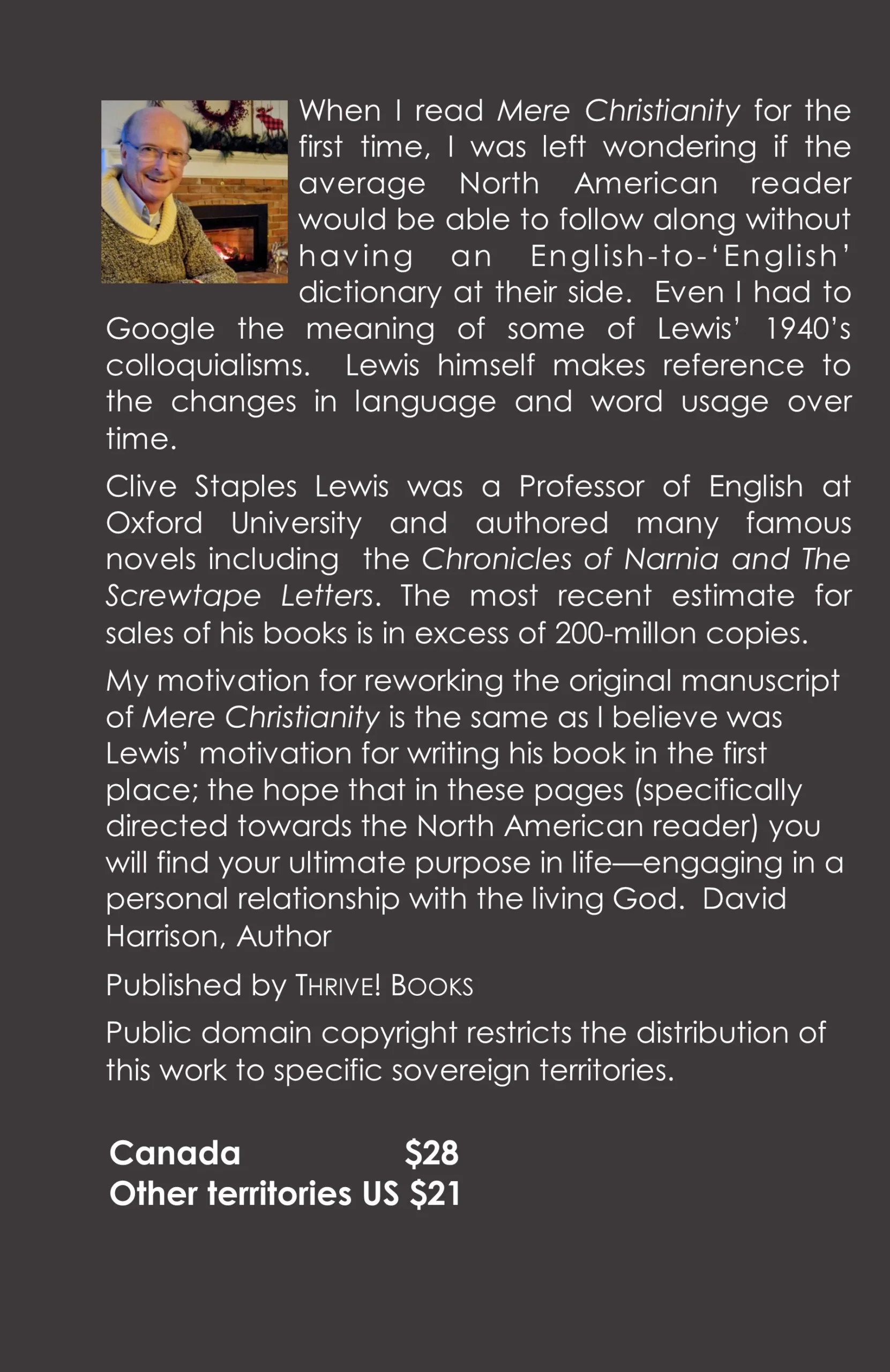 Thank you again for taking the time to write these books so folks like me could have a greater understanding.” D.   C.S. Lewis’ Mere Christianity in Everyday English