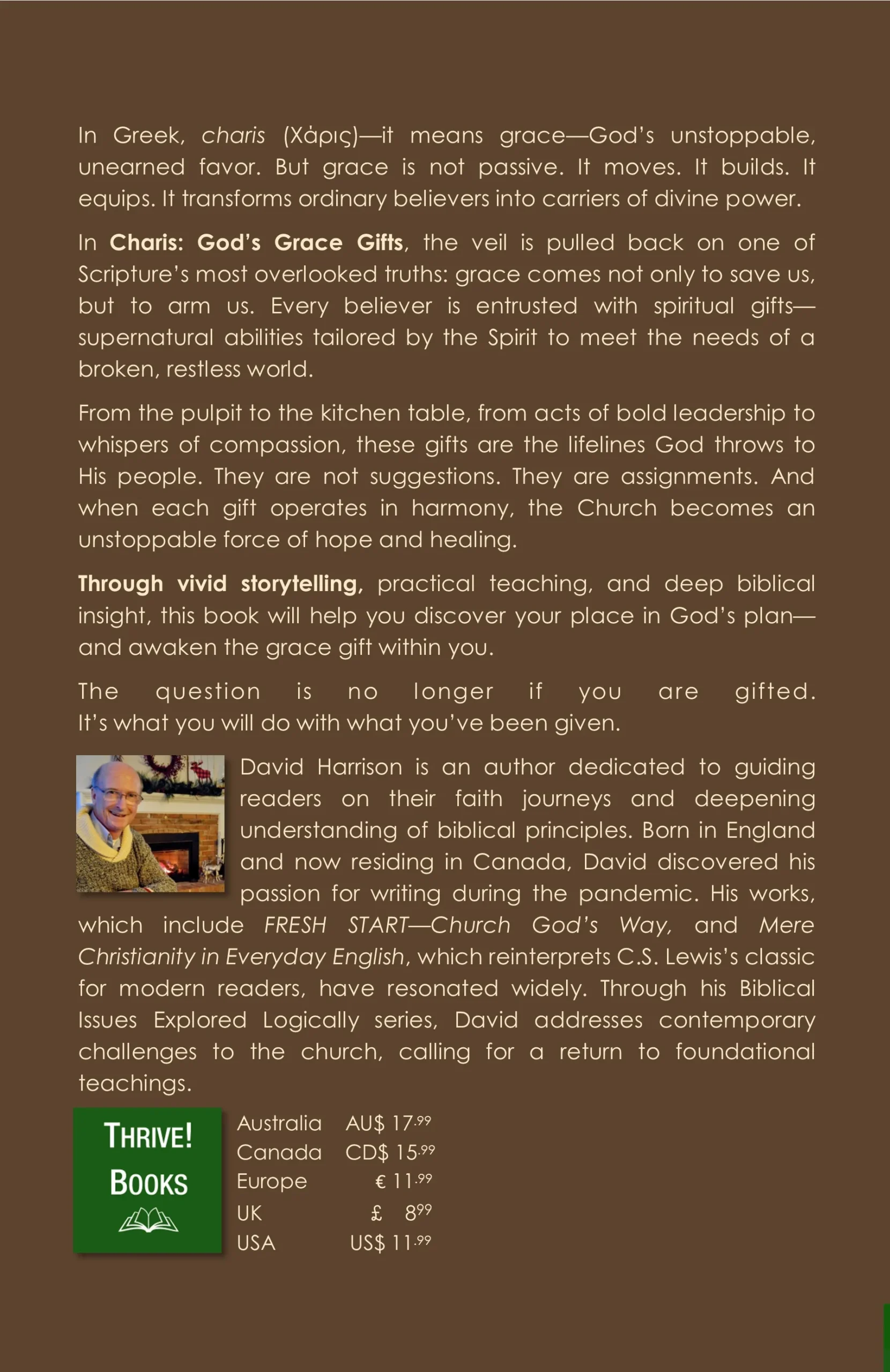 In Charis: God’s Grace Gifts, the veil is pulled back on one of Scripture’s most overlooked truths: grace comes not only to save us, but to arm us. Every believer is entrusted with spiritual gifts—supernatural abilities tailored by the Spirit to meet the needs of a broken, restless world.
